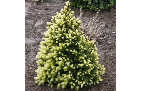 Описание: Растение имеет конусовидную форму. Особенно эта ель бывает, декоративна с появлением новых приростов желтовато-белого цвета в мае-июне, позже приросты зеленеют. Растет относительно медленно и в десятилетнем возрасте достигает высоты 0,8 м. Использование: Благодаря миниатюрным размерам и раннелетнему убранству, маленькая елочка может стать прекрасным солитером в вересковом саду, а также составить компанию другим карликовым хвойным и травянистым растениям в альпинарии.