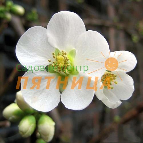 Описание: Красивый кустарник, сначала пряморастущий, позднее раскидистый, высота — до 1,5 м. Молодые листья - с красноватым оттенком, взрослые - тёмно-зелёные; блестящие. Цветение: весной на обнажённых ветвях раскрываются пучки снежно-белых цветов с центральными жёлтыми тычинками диаметром 2–3 см. Цветёт в мае, иногда ещё повторно — в августе. Плоды: размером 5–7 см, ароматные с оттенком ананаса, съедобные, овальные, напоминают по форме лимон, бледно-жёлтые, созревают в начале сентября. Вкус: терпкий, вяжущий, кисло-сладкий. Айву используют главным образом для консервирования. Использование: Для одиночных и групповых посадок.