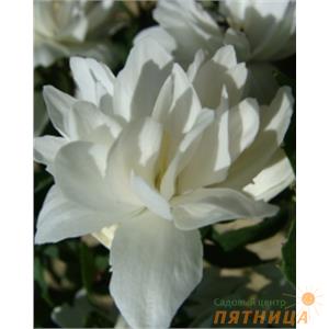 Описание: «Шнеештурм» (Philadelphus Schneesturm) — листопадный кустарник немецкого происхождения. Также известен как «садовый жасмин», «метель» или «снегопад». Высота: от 1,5 до 2 м (иногда до 3 м), ширина — до 2 м. Цветки: крупные, махровые, белого цвета, диаметром около 5 см. Собраны в кисти на концах недлинных молодых побегов, обычно по 3–5, а иногда и 7–9 штук. Цветение: с конца июня — начала июля. Аромат: тонкий, схожий с запахом настоящего жасмина. Использование: подходит для одиночных и групповых посадок, создания древесно-кустарниковых композиций, свободно растущих живых изгородей, в парках и садах.