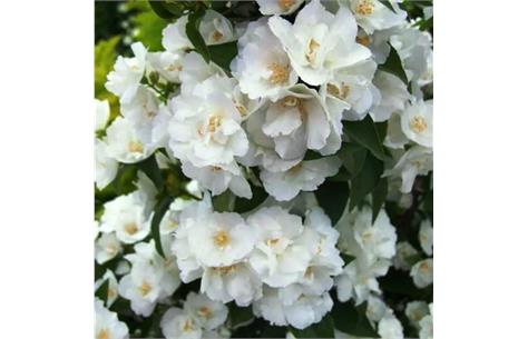 Описание: Чубушник Монблан – карликовый куст. Вырастает на солнечном участке до 1,2 м. Новые побеги имеют опушение, кора коричневого цвета с чешуйками. Небольшие ровные или с зазубринами листья вырастают до 4 см. Чубушник Монблан формирует короткие соцветия – до 3 см. Каждая кисть содержит группы близко сидящих цветков, по 3-5 штук. Бутоны полумахровые, белоснежные. В центральной части расположены тычинки, окрашенные в желтый цвет. Нижний ряд широких лепестков расположен без просветов. Внутренних лепестков немного, они завернуты к центру.