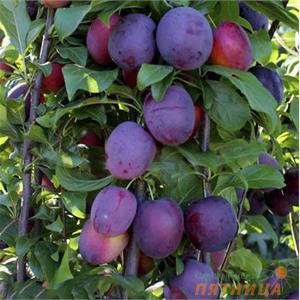 Описание: Деревья высотой до 2,5 метров отличаются небольшим штамбом, крайне редким образованием боковых ветвей и обильным плодоношением. На плодовых деревьях при грамотной агротехнике вызревает до 15 килограмм крупных темно-синих плодов. Если лето достаточно теплое, не склонные к растрескиванию плоды набирают вес до 60–70 грамм. Под покрытой сизым восковым налетом кожицей скрывается сочная, ярко-желтая мякоть кисло-сладкого вкуса. Приятным бонусом для любителей свежих плодов сорта Блю Свит станет легко отделяемая от тающей мякоти овально-заостренная косточка.