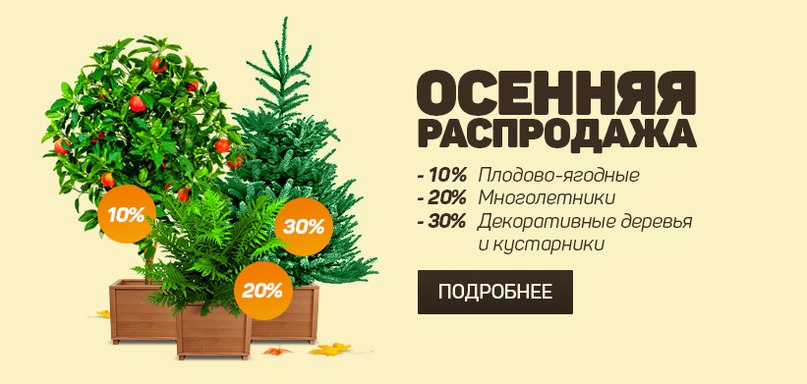 - 30% на декоративные деревья и кустарники.