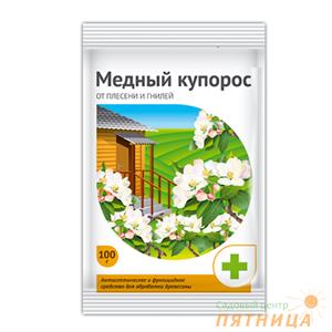 Описание: Медный купорос — 98 %-ный растворимый порошок — применяется до распускания почек для борьбы с возбудителями парши, монилиоза, различных пятнистостей листьев яблони и груши, клястероспориоза, коккомикоза и других пятнистостей косточковых деревьев, антракноза, септориоза и других пятнистостей крыжовника и смородины. Концентрация рабочего раствора 1 % (100 г на 10 л воды).