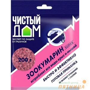 Гранулы от грызунов 200 гр Чистый дом зоокумарин-супер пакет