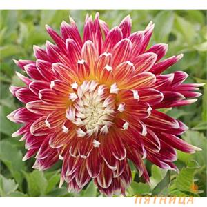 Описание: Цветок хризантемовидный, крупный, сочного красно-коричного цвета, с лепестками, желтеющими к центру бутона. Диаметр цветка до 20 см. Высота растения 100 см.