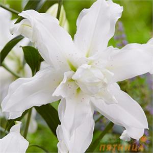 Описание: Цветки белоснежные с зелёным горлом и легким крапом. Цветок густомахровый. Высота 110 см. Стебли прочные, облиственные. Цветки лилии 21 см в диаметре. Насыщенный аромат. Период цветения июль-август.