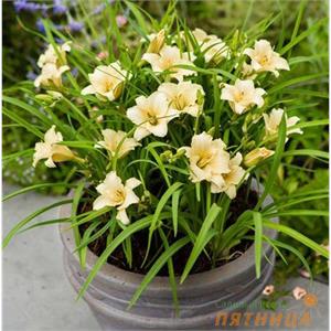 Описание: Высота достигает 35 см. Наилучшее место посадки – солнце.Начинает цветение в июне-сентябрь. Цветок размером – 8 см. Повторноцветущий. Кремовый с жёлтым горлом.