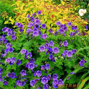 Описание: Цветки сиренево-синие, с темными прожилками на лепестках. Высота 30 см. Листья сизовато-зеленые, округлой формы, с рассеченными лопастями. Осенью листья приобретают красивый буро-красный оттенок. Цветки диаметром 4-5 см. Период цветения середина июня-сентябрь. Укрытие на зиму не требуется.