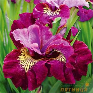 Описание: Высота растения 75 см. Цветок бархатистый, нижние лепестки бордово-пурпурные с желтым сигналом, верхние - сиренево-розовые.