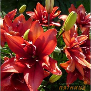Описание: Красная. Диаметр цветка - 17 см, высота - 90 см. Азиатские лилии предпочитают солнечное или полутенистое место, плодородную хорошо дренированную почву, хорошо зимуют в Подмосковье, цветут в середине лета 2 - 4 недели.