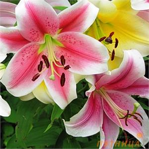 Описание: ЛО гибрид, высота - 120 см, более 5 бутонов, цветок - розовый, полосы красные, контрур белый.
