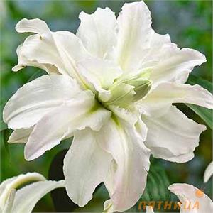 Описание: Лилия Полар Стар относится к виду Восточных гибридов. Цветки махровые, диаметром 20 см, белые со светло-зелёными лучами от центра. Растут в сторону и вверх. Зацветают в июне-июле. Очень ароматные. Высота растения 100 см.