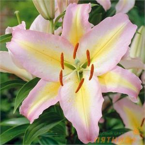 Описание: Лилия Фокус Покус восточная - относится к наиболее крупным сортам - диаметр цветка до 30 см. Они нежно-розовые, с легким сиреневым оттенком, по центру лепестков широкие желтые продольные полосы, лепестки немного гофрированы и загнуты кзади. Бутоны появляются в июле и сразу привлекают к себе внимание приятным ароматом. Высота растения до 120 см.