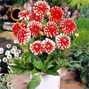 Описание: Мюзетт - высота растения 120 см. Цветок диаметром 11 см, красный с белыми кончиками.
