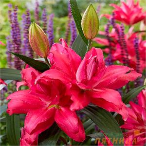 Описание: Удивительно красивый сорт с крупными яркими махровыми цветами. Диаметр цветка доходит до 18-20 см, лепестки атласные, малиново-красные. Цветение приходится на июль-август. Прочные побеги украшены ланцетными, темно-зелеными листьями. Лилия морозостойка, нетребовательна в уходе, устойчива к заболеваниям. Хорошо растет на солнечных участках и в полутени.