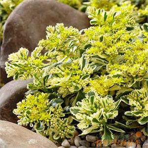 Описание: Отличается вариегатной окраской и компактной формой роста. Высота: около 10 см, ширина — до 50 см. Стебли: крепкие, сильно разветвлённые, стелющиеся. Цвет стеблей — зелёный или красный. Листья: Пёстрые, зелёные со слегка выраженной сливочной каймой по краю листа. Осенью листья приобретают розово-красные оттенки. Цветки имеют форму звёздочки и обладают слабым ароматом. Применение: подходит для создания альпийских горок, каменных садов, украшения контейнеров и оформления переднего плана цветника, может использоваться в рокариях.