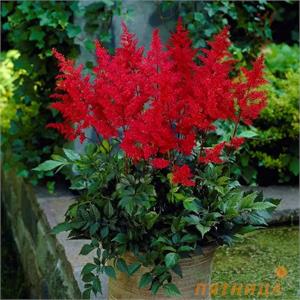 Описание: В переводе с английского — «Красный Небоскреб». Высота растения в период цветения — 60–75 см. Соцветия-метёлки насыщенного красного цвета, часто превышающие 30 см в длину. Цветение наступает в середине лета и длится около 3–4 недель. После цветения соцветия медленно теряют интенсивность окраски, но сохраняют декоративность благодаря своей архитектурной структуре. Применение: Создание композиций в тенистых уголках сада, оформление берегов водоёмов. Посадка под кронами деревьев или в контейнерах на затенённых патио и террасах.