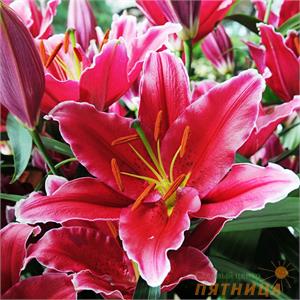 Описание: Лилия Лилия восточная Чартвелл (Chartwell) - цветок красный с белым кантом и темным крапом, имеет гофре по краю лепестков .Диаметр цветка 17-18 см. Высота растения 120 см. Предпочитают солнечные участки, но хорошо растут и в полутени.
