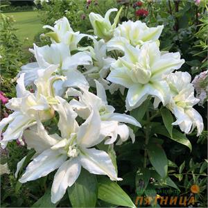 Описание: Высокорослый сорт с узкими темно-зелеными листьями и прочными побегами высотой до 120 см. Цветет в июле-августе удивительно крупными, диаметром до 18 см, махровыми ароматными цветами с белоснежными лепестками.