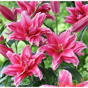 Описание: Лилия (Fabienne) Фабиенн относится к восточным гибридам. Высота растения до 120. Цветок крупный. Окрас цветка: Яркая малиновая окраска лепестков контраститует с белым кантом. Цветок крупный, махровый, ароматный., диаметр цветка до 20 см.