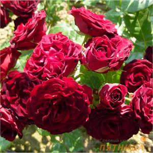 Описание: Цветки темно-красные, махровые (около 40 лепестков) диаметром 4-5 см, в роспуске показывают серединку с ярко-желтыми тычинками. Листья тёмно-зелёные, жёсткие, крепкие, полностью устойчивые к мучнистой росе и чёрной пятнистости. Кусты густые, сильно разветвлённые, шипов нет, высотой 40- 60 см. Изящная роза.