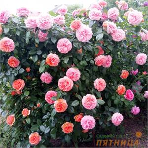 Описание: Куст: сильнорослый, высотой 80–120 см и шириной около 100 см. Цветки: густомахровые (60–80 лепестков), крупные (диаметром 10–12 см), плотно набитые, собраны в небольшие (до 3 штук) соцветия. Окрас цветков меняется в зависимости от стадии цветения: бутоны имеют тёплый розовый цвет, а по мере распускания лепестки приобретают оранжевую окраску. Аромат: сильный, фруктовый. Цветение: обильное, повторное. Цветы держатся долго (несколько недель), отцветая, аккуратно осыпаются. Устойчивость: сорт устойчив к неблагоприятным погодным условиям и к заболеваниям (чёрной пятнистости, мучнистой росе).