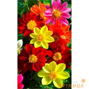 Описание: Жизнерадостные низкорослые георгины! Растения компактные высотой около 35 см. Соцветия разнообразных окрасок, диаметром 8-9 см. Цветет с июля по октябрь. Используют в цветниках большими группами на клумбах. Прекрасный материал для срезки. Агротехника. Любит обильный полив и подкормки. Семена высевают в марте в рассадные ящики. Глубина заделки 0,3-0,5 см. При температуре почвы +18°С всходы появляются на 7-14 день. Сеянцы пикируют в горшочки. Рассаду высаживают по окончании весенних заморозков (в конце мая), выдерживая расстояние между растениями 20-30 см.