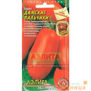 Описание: Сорт раннеспелый. Универсального грунта. Растение детерминантное, компактное, высотой до 60 см в открытом грунте (не пасынкуется), до 1,2 м в закрытом. Соцветие простое 5-6 плодов. Плоды удлиненно-цилиндрической формы со слабой ребристостью, двухкамерные, интенсивно красного цвета, массой 50-70 г. Сорт транспортабельный, лежкий, отличных вкусовых качеств в свежем виде, а также рекомендуется для цельноплодного консервирования и засолки. Компания «АЭЛИТА» является эксклюзивным продавцом семян томата сорта «Дамские пальчики»® на российском рынке семян. Агротехника: Посев: 2-я половина марта, при t° почвы 20-25°С. Семена обрабатывают в марганцовке, промывают, проращивают. Высевают на глубину 1 см по схеме 3х1,5 см и ставят на солнечное место. Высадка рассады: с конца мая (когда минует угроза заморозков) по схеме: 70 см между рядами, 50 см между растениями. Уход: пикировка через 20 дней после посева. Через 12 дней - подкормка. Почву необходимо регулярно подкармливать, поливать и рыхлить. Сбор урожая: от всходов до созревания плодов 95-110 дней. Урожайность до 15 кг/м2.