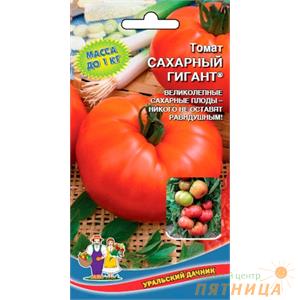 Описание: Среднеспелый крупноплодный сорт томата. Куст обычно высотой 1,5 метра, рост его прекращается после нагрузки плодами. Первая кисть формируется над 8-9 листом, каждая последующая через 2 листа. Плоды красные, крупные, особенно впечатляют первые — их вес достигает 1 кг. Все они плотные, сахаристые, с плотной кожицей, поэтому не трескаются. Урожайность томата сахарный гигант до 6 кг с куста. Этот сорт рекомендован для выращивания в открытом грунте и теплицах.