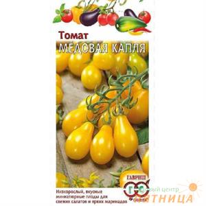 Описание: Среднеранний (от всходов до плодоношения 100-10 дней) низкорослый сорт для выращивания в открытом грунте и пленочных теплицах. Растение высотой 50-100 см. Плоды каплевидной формы, гладкие, медового цвета, массой 30 г, с приятным сладковатым вкусом и нежным томатным ароматом. Из сорта Медовая капля получаются аппетитные и яркие свежие салаты, соленья, маринады, вкусные закуски и канапе. Посев на рассаду - в марте-начале апреля. Пикировка рассады - в фазе первого настоящего листа. Посадка рассады в грунт - начало-середина мая или конец мая-начало июня. Растение требует пасынкования и подвязки.