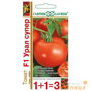 Описание: Гибрид специально создан для условий Уральского региона! Первый урожай спелых, вкусных, сладких томатов собирают через 116-120 дней после появления всходов. Рекомендован для пленочных и остекленных теплиц. Индетерминантный (с неограниченным ростом), оптимально использует объем теплиц. Посев на рассаду в конце февраля – начале марта. Пикировка в фазе первого настоящего листа. В период выращивания рассады необходима дополнительная досветка. Высадка рассады в теплицы в конце апреля в возрасте 50-55 дней. Обязательна подвязка растений через несколько дней после высадки. Формируют растение в один стебель, удаляя все «пасынки» и нижние листья, а так же прищипывают точку роста в конце вегетации. Плоды плоскоокруглой формы, гладкие, массой 350 г, преимущественно салатного назначения. Схема посадки 40х60 см. Требует повышенных доз удобрений. Гибрид устойчив к возбудителям вируса табачной мозаики, кладоспориоза, фузариоза. Урожайность одного растения 4,5-5,0 кг, лучший результат до 8 кг.