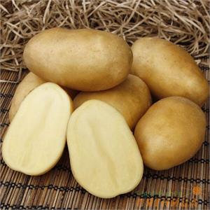 Описание: Ранний (80-90 дней) картофель представляет собой высокорослый куст промежуточного типа, вырастающий до 80-85 см в высоту. Особенностью растения является запутанная структура корневища, которые способны стремительно развиваться. На одном кусте вызревает до 11 клубней. Масса овоща может достигать 140 грамм (в среднем это 106-139 г). Форма клубней правильная – удлиненно-овальная с гладкой поверхностью, на которой незначительные глазки с мелким залеганием. Кожура у картофеля тонкая, почти прозрачная, светло-бежевого окраса. В картофельной мякоти содержится до 15,5% крахмала, а также ряд микроэлементов и витаминов.