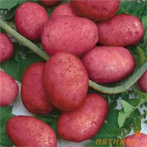 Описание: Среднеранний сорт - 90-100 дней. Клубень овальный с мелкими глазками. Кожура красная, мякоть светло-жёлтая. Масса товарного клубня — 92–166 г. Содержание крахмала — 17,3%. Вкус хороший и отличный. В кусте 12-15 клубней. Вкус отличный. Универсальный в кулинарном отношении. Высокая устойчивость к фитофторозу, нематоде. Жаро- и засухоустойчив.