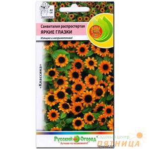 Описание: Однолетнее стелющееся растение, образующее широкие кустики. Стебли сильно разветвленные, прочные, тонкие, с освещенной стороны красноватые. Листья на коротких черешках или почти сидячие, широкоовальные, цельнокрайные. Соцветия — корзинки 2-2,5 см в диаметре, многочисленные, очень эффектные, с выпуклым темно-коричневым или почти черным диском трубчатых цветков; язычковые — расположены в один ряд, желтые или оранжево-желтые. Цветет обильно с середины июля до октября.